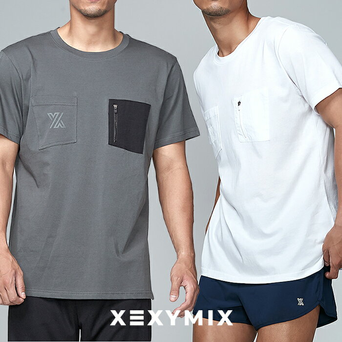 xexymix ゼクシィミックス スポーツウェア Mens メンズ XT1002T ダブルポケット 半袖 Tシャツ トップス ストレッチ フィットネス ジム トレーニング ワークアウト ランニング