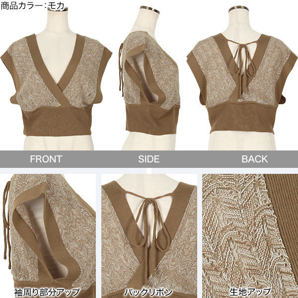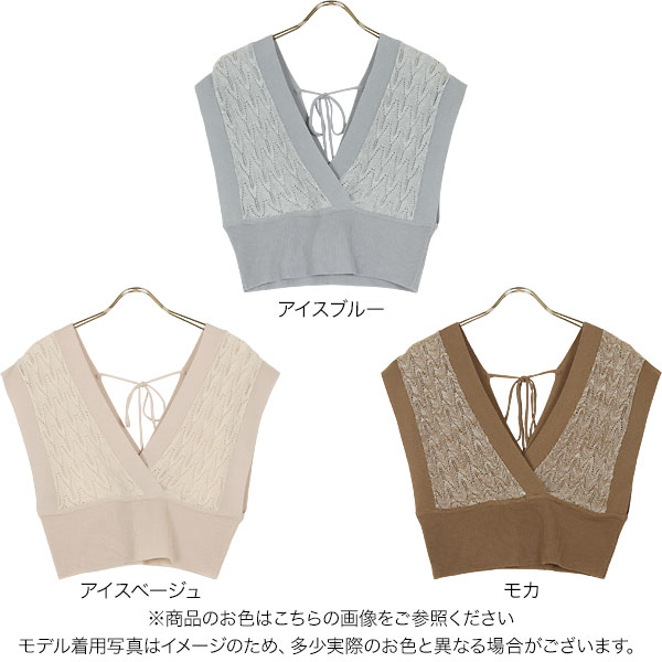 特別セール★送料無料! ジャガードニットビスチェトップス [C5496]【入荷済】 レディース レイヤード 重ね着 ビスチェ トップス サマーニット バックリボン トップス 春夏 春 サマー ニット ニットビスチェ Vネック【送料無料】【メール便】