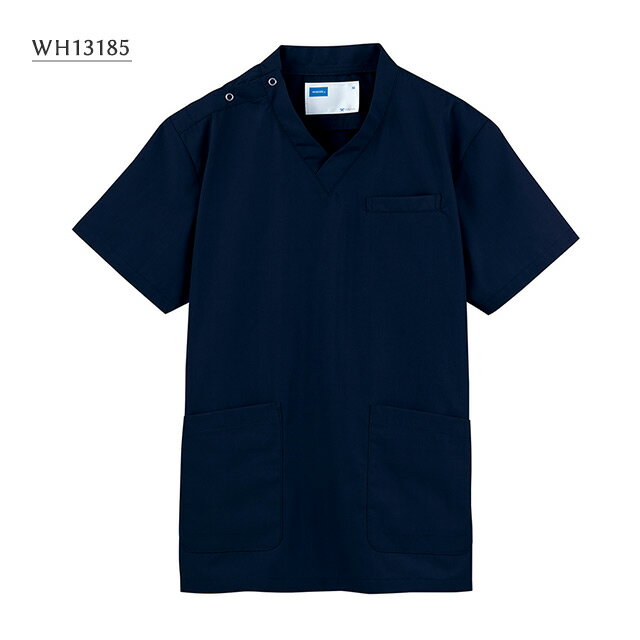 抗ウイルス加工スクラブ(男女兼用) ネービー WH13185 SS〜4L ホワイセル(WHISEL)【大きめサイズ 小さめサイズ 歯科 クリニック 病院 制服 ウェア 防臭抗菌 ユニセックス ユニフォーム】