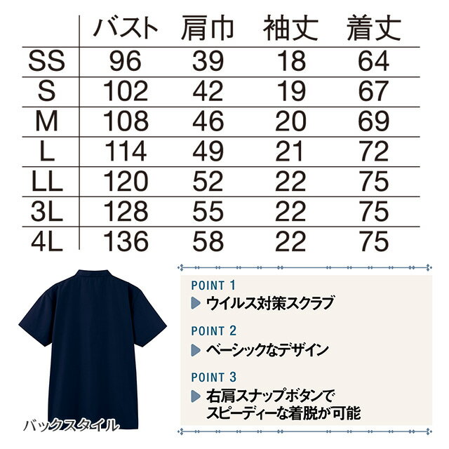抗ウイルス加工スクラブ(男女兼用) ネービー WH13185 SS〜4L ホワイセル(WHISEL)【大きめサイズ 小さめサイズ 歯科 クリニック 病院 制服 ウェア 防臭抗菌 ユニセックス ユニフォーム】