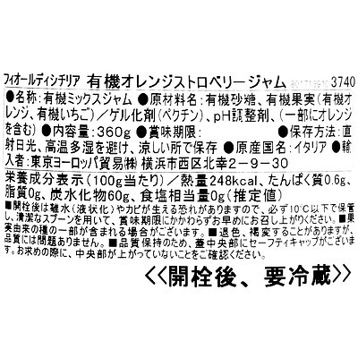 フィオールディシチリア 有機オレンジストロベリージャム 360g